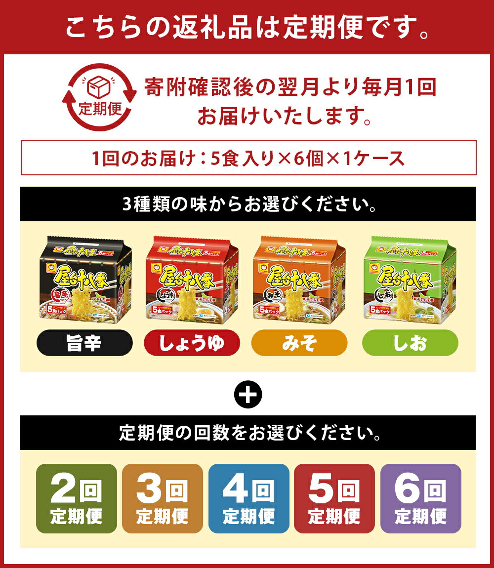 - 【ふるさと納税】【味・回数が選べる定期便】屋台十八番 旨辛 しょうゆ みそ しお(5食×6個)×1ケース 2~6回 合計 60食~180食 札幌ラーメン ラーメン 拉麺 麺 麺類 インスタント 小樽市 北海道 送料無料
