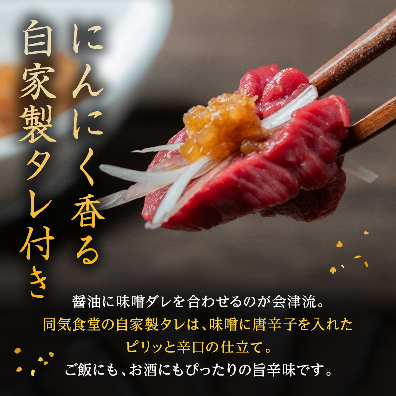 大正10年創業【同気食堂】福島県の老舗の味「会津の馬刺し」自家製タレ付 (約150g×2) にく 肉 お肉 馬肉 赤身 ヘルシー 福島県 西会津町 F4D-0003