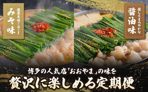 W08-84 「おおやま」もつ鍋 味わい定期便【隔月定期便(年3回発送)】 もつ鍋 醤油 しょうゆ みそ 味噌 おおやま モツ ホルモン 定期便 福岡 人気 国産 福智町 人気 おすすめ