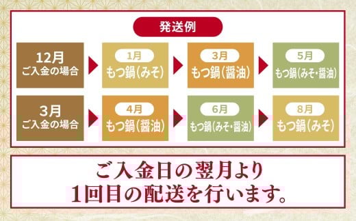 - W08-84 「おおやま」もつ鍋 味わい定期便【隔月定期便(年3回発送)】 もつ鍋 醤油 しょうゆ みそ 味噌 おおやま モツ ホルモン 定期便 福岡 人気 国産 福智町 人気 おすすめ