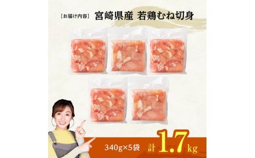 ※令和8年3月発送※宮崎県産若鶏 むね切身 計1.7kg(340g×5)【 宮崎県産 真空パック 国産 九州産 鶏肉 若鶏 肉 とり むね ムネ肉 宮崎県 川南町 送料無料 】