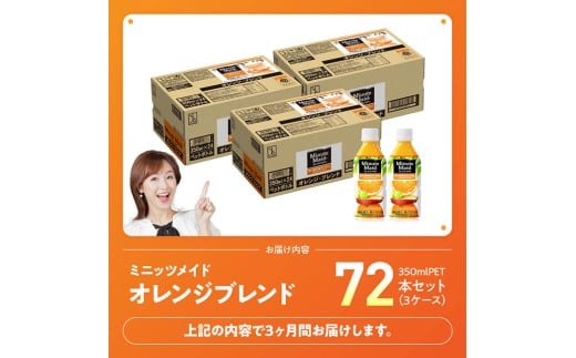 - 【3ヶ月定期便】コカ・コーラ ミニッツメイド「オレンジブレンド」 350mlPET 72本 【 ふるさと納税 飲料 オレンジ ジュース ミックス ブレンド PET 川南町 国内産 九州 宮崎県 送料無料 】