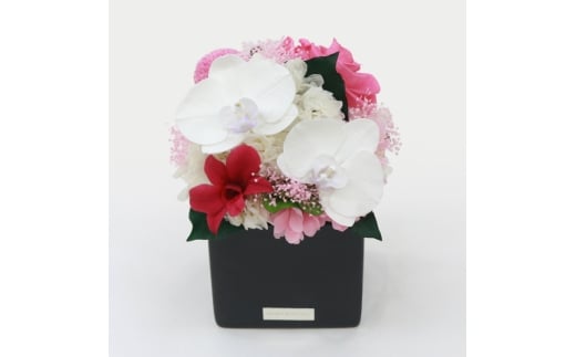 胡蝶蘭キューブM 花 お花 プリザーブドフラワー ギフト プレゼント お祝い 誕生日 お供え アレンジ インテリア 東京都 墨田区【イエロー×オレンジ】 [№5619-6317]