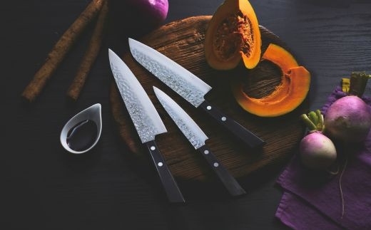 一点一点手作業で進めるpommeナイフ【3品セット】(パン切りナイフ/ペティナイフ/チーズナイフ)H70-13