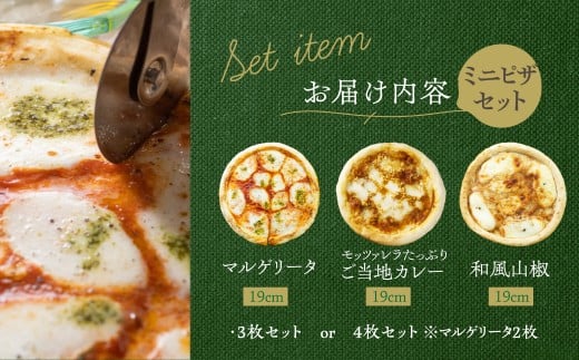 - 【ミニピザ3種4枚セット】自家製チーズたっぷりミニピザ3種4枚セット(直径19cm) ピザ 冷凍 人気 マルゲリータ 洋風トマト 和風山椒 牧成舎 [Q1642x_mini4] HIDAミルクプロジェクト 日時指定