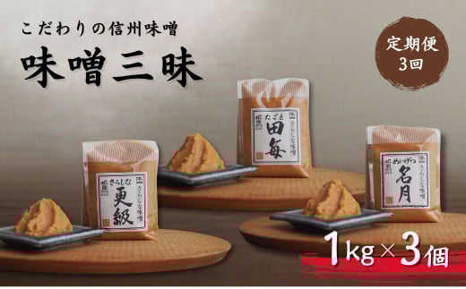- 【定期便3回 2ヶ月毎にお届け】こだわり信州味噌 味噌三昧 (1kg×3個) 味噌 長野県産 千曲市