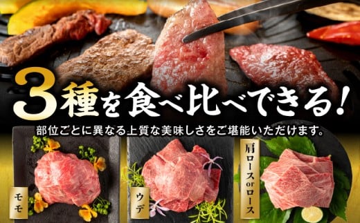 【期間・数量限定】畜産農家応援!宮崎県産 黒毛和牛 焼肉3種セット(肩ロースorロース・ウデ・モモ 各300g)・国産牛ハンバーグ100g×2個_M132-030-PU-B2