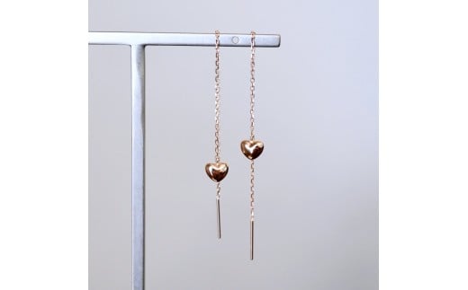 K18PG(18金) ローズゴールド 地金 ハート チェーン ピアス シンプル 保証書付 KO-0066 242-026-c