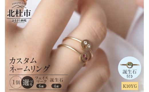 K10YG 「C4LL ME」カスタム ネームリング 誕生石あり1個(ダイヤ/ルビー/エメラルド/サファイア)