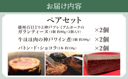GENTO ペアセット|もも肉 ほほ肉 神戸 ポーク 牛 スイーツ ショコラ 菓子 デザート チョコレート 芦屋市 芦屋 グルメ フレンチ フランス料理 食事 ギフト 贈り物 お祝い 誕生日 記念日