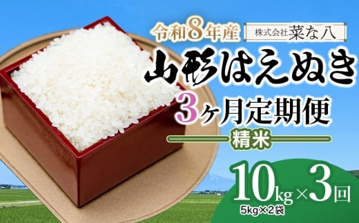 - 【令和8年産先行予約】【定期便】山形はえぬき精米 10kg(5kg×2袋)×3ヶ月 山形県鶴岡市産 株式会社菜な八(鶴岡ファーマーズ)