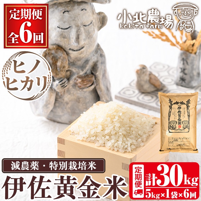 isa602 《数量限定・6回定期便》令和7年産 小北農場のお米 伊佐黄金米〈ヒノヒカリ〉(計30kg・5kg×1袋×6回) 鹿児島 伊佐 お米 特別栽培米 伊佐米 白米 ヒノヒカリ ひのひかり おにぎり ごはん 【小北農場】