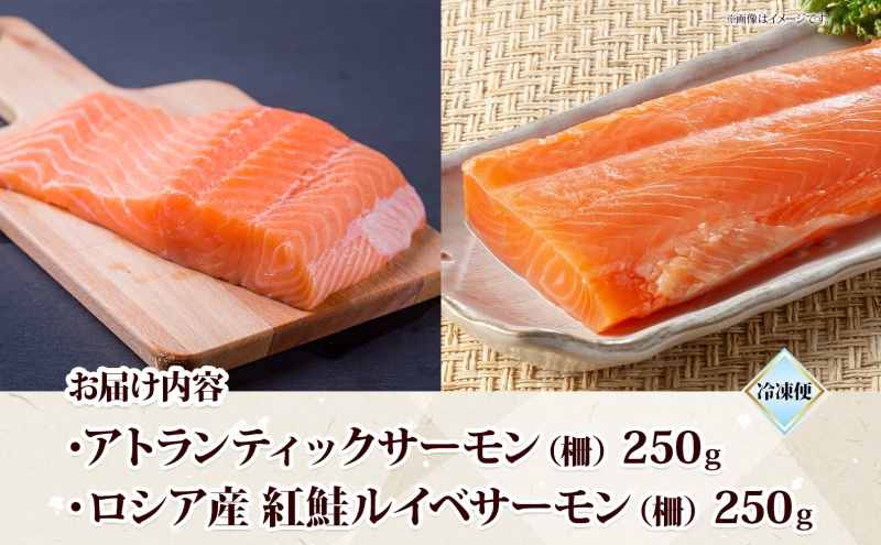 山田水産 アトランティックサーモン ロシア産 紅鮭 ルイベ サーモン 各250g 計500g 小分け 鮭 海鮮 生食用 刺身用 サケ さけ シャケ しゃけ 魚 魚介類 刺身 寿司 丼 新鮮 送料無料 山田水産 北海道 滝川市