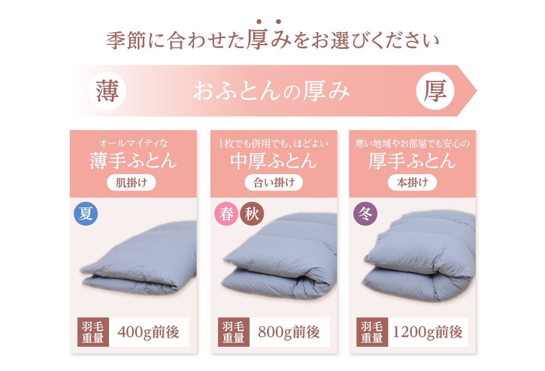 - 【数量限定】 ちょうどいい羽毛布団 ライトグレー シングル 薄手 中厚 厚手 【選べるおふとんの厚みタイプ】 肌掛け 合い掛け 本掛け 布団 寝具 羽毛ふとん すぐ届く スピード発送 山梨 富士吉田