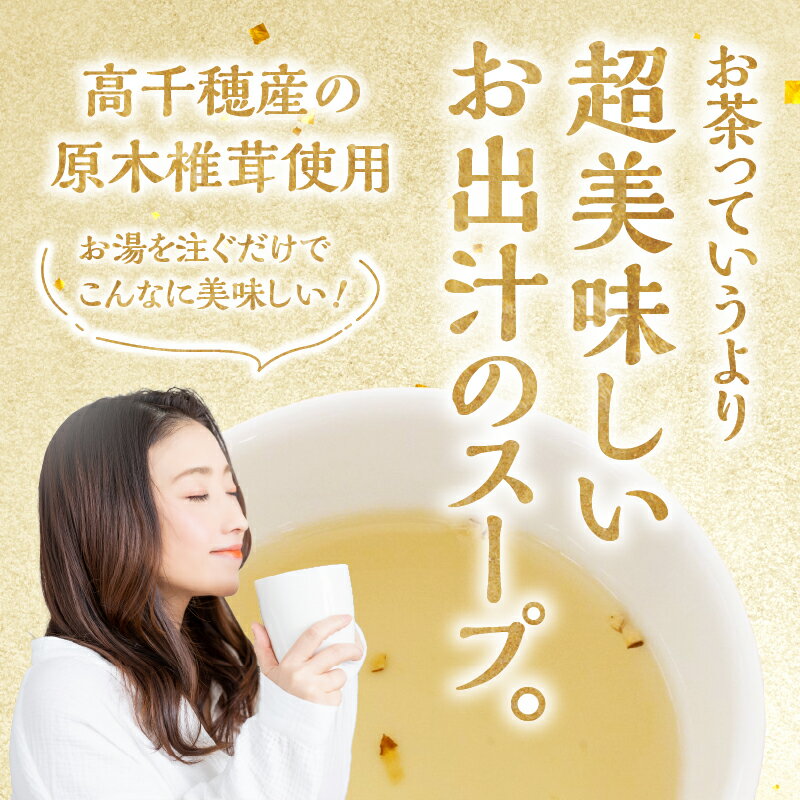 - 【ふるさと納税】椎茸命茶 椎茸 原木椎茸 粉末 粉 パウダー お茶 出汁茶 茶 スープ 干し椎茸 うまみ成分 旨味 風味 濃厚 万能 調味料 出汁 普段使い 料理 レシピ 家庭用 スティック 個包装 即席 国産 贈り物 贈答 プレゼント ギフト グルメ 人気 宮崎県 高千穂町 送料無料