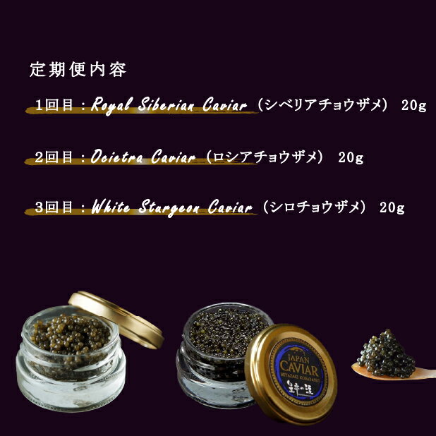 - 【ふるさと納税】【キャビア定期便】皇帝の涙3種食べ比べ定期便 キャビア オシェトラ シベリア 定期便 チョウザメの卵 チョウザメ 食べ比べ 魚介 魚卵 おつまみ ふるさと 人気 おすすめ 贈答 ギフト お裾分け プレゼント 宮崎県 小林市 送料無料