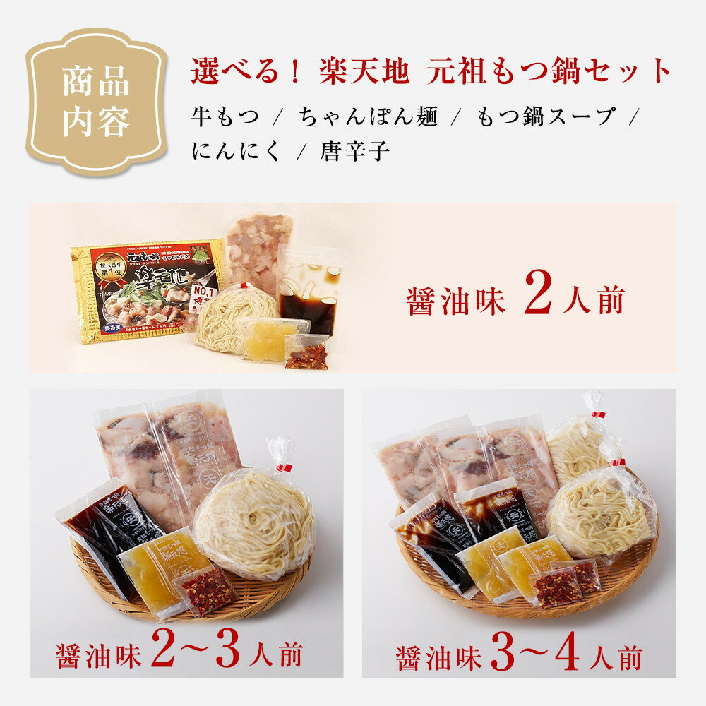 - 【ふるさと納税】<最短7営業日発送>選べる【元祖もつ鍋楽天地】元祖もつ鍋(秘伝醤油味)2人前~4人前 | 福岡県 福岡市 もつ鍋 もつなべ もつ鍋セット 鍋 なべ お取り寄せグルメ 福岡 お土産 グルメ 博多 九州 モツ もつ ご当地グルメ 人気 送料無料 年内