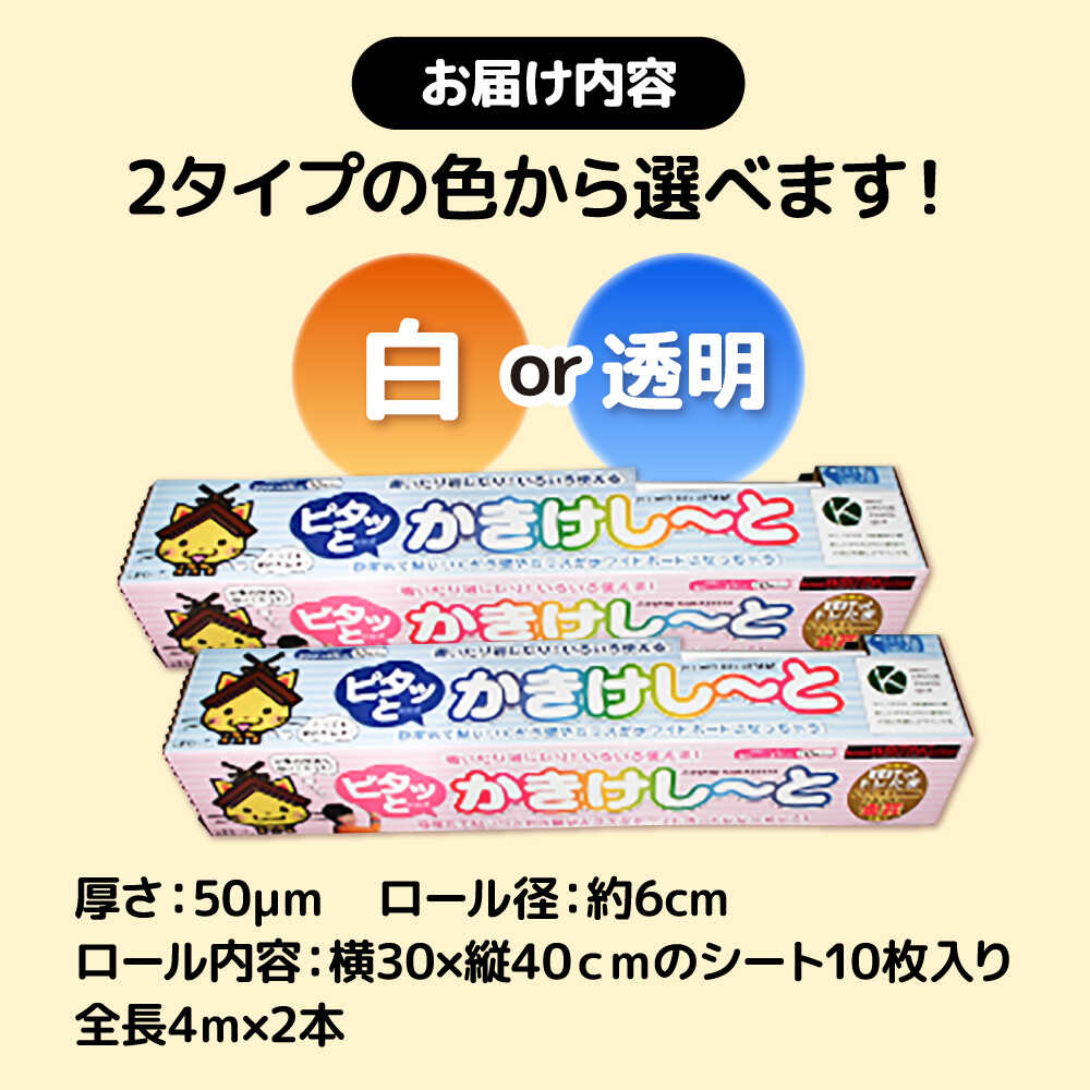- 【ふるさと納税】【選べるカラー】 ホワイトボード ピタッとandかきけし〜と (白または透明)10枚入り×2本セット シート シール 貼れる 剥がせる 雑貨 文房具 人気 おすすめ インテリア 壁 ガラス お絵描き 島根県雲南市/株式会社 サンキコーポレーション[AIAR003]