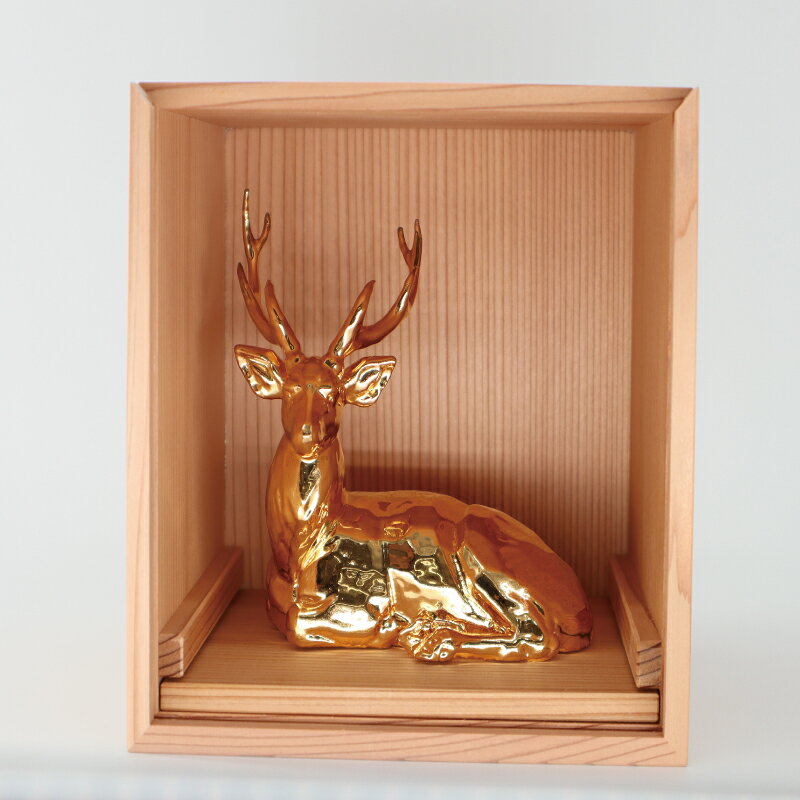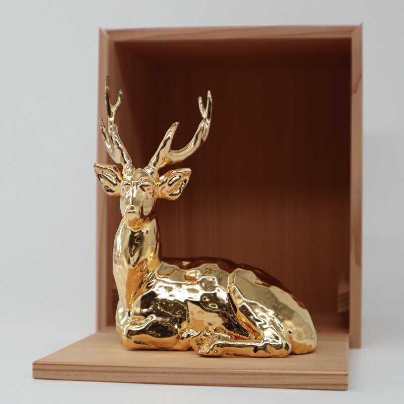 【ふるさと納税】幸運を運ぶ神鹿 (純金めっきしたレプリカ) 中 ※木箱 奈良市 有限会社 高山商会 奈良 一刀彫 純金 24k メッキレプリカ 置物 なら