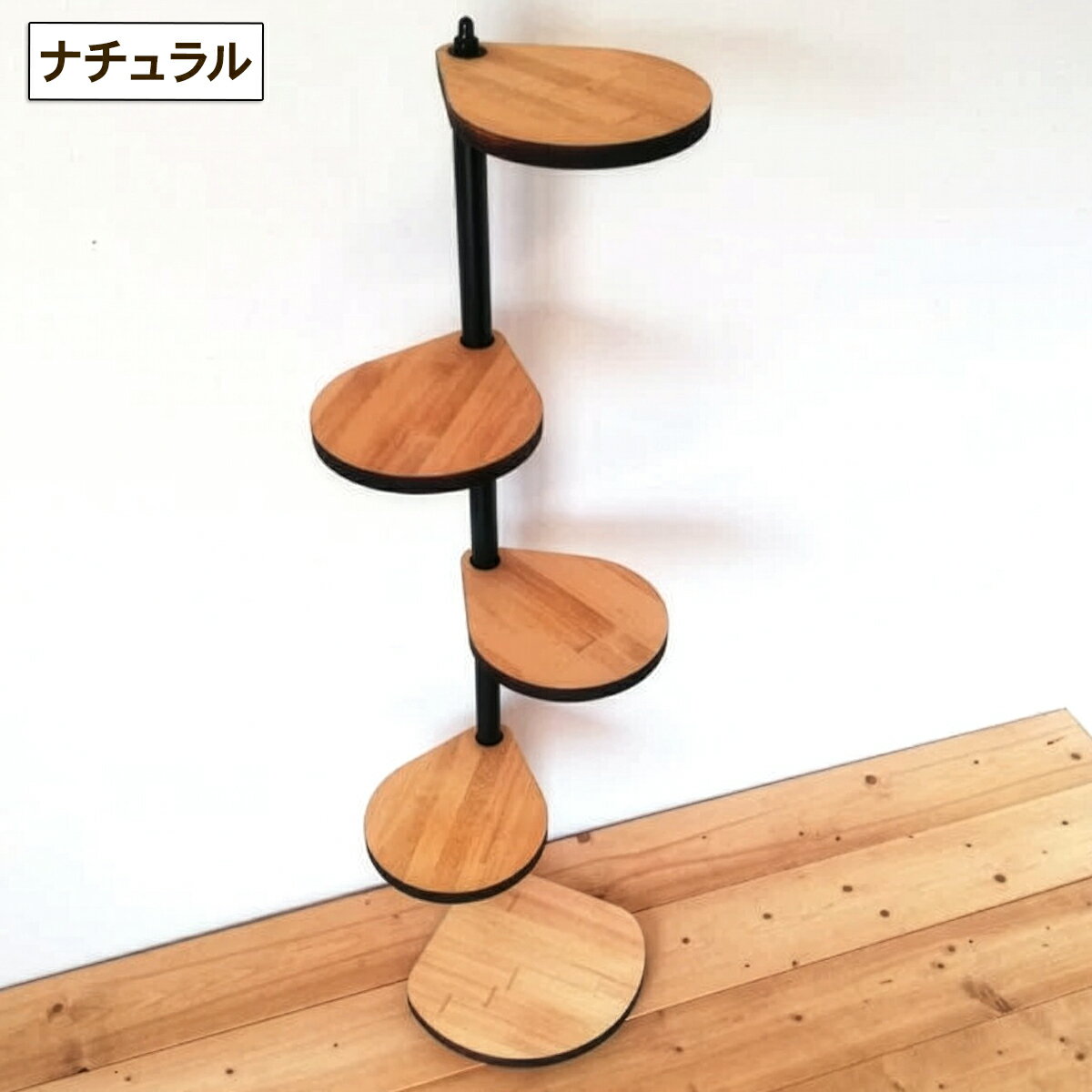 - 【ふるさと納税】しずくのスタンドシェルフ 4段『角に置けるタイプ』[ナチュラル][ブラウン] 45×30×110cm 天然木/完成品|コーナー 角置き フラワースタンド 花台 飾り棚 小物置き ディスプレイ棚 インテリア [0986r][0948r]