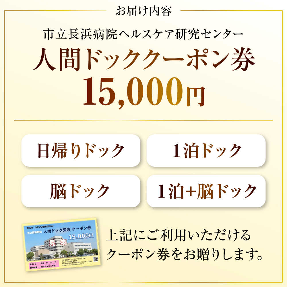 【ふるさと納税】市立長浜病院 人間ドッククーポン券 15000円 滋賀県長浜市/市立長浜病院 ヘルスケア研究センター [AQAU005] ※着日指定不可 検診 人間ドック クーポン 長浜 滋賀 健康 補助券 病院 健康診断 ヘルスケア 体験 サービス 日帰り 一泊 滋賀県 長浜市