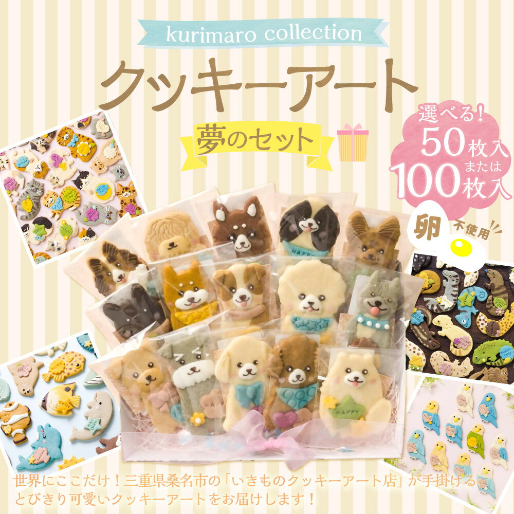 【ふるさと納税】<選べる内容量> 【卵不使用】 kurimaro collection クッキーアート夢の50枚セット / 100枚セット 犬 猫 鳥 爬虫類 両生類 魚 どうぶつ いきもの かわいい 可愛い 小麦100% ひよこ豆の煮汁 天然塩 合成着色料不使用 お菓子 焼菓子 スイーツ おやつ 送料無料