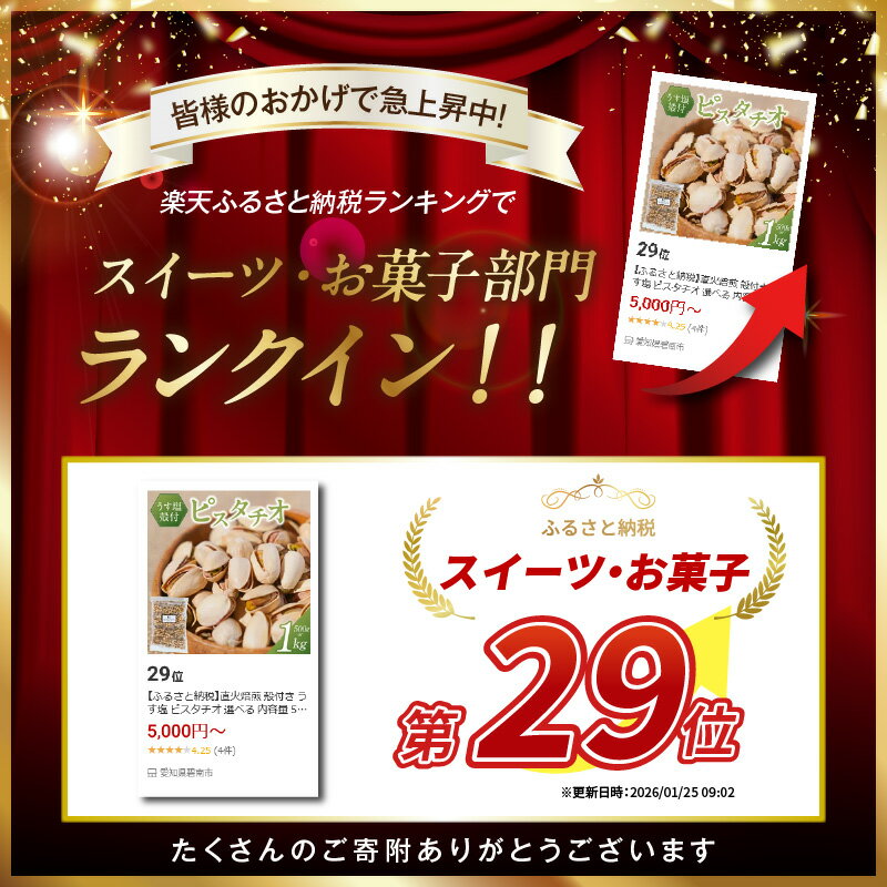 - 【ふるさと納税】直火焙煎 殻付き うす塩 ピスタチオ 選べる 内容量 500g 1kg ナッツ 香ばしさ 甘さ 食べきりサイズ 小腹 食べ過ぎ防止 ダイエット バランス食 健康対策 おやつ おつまみ お取り寄せ シュクレナッツ sucre nuts 愛知県 碧南市 送料無料