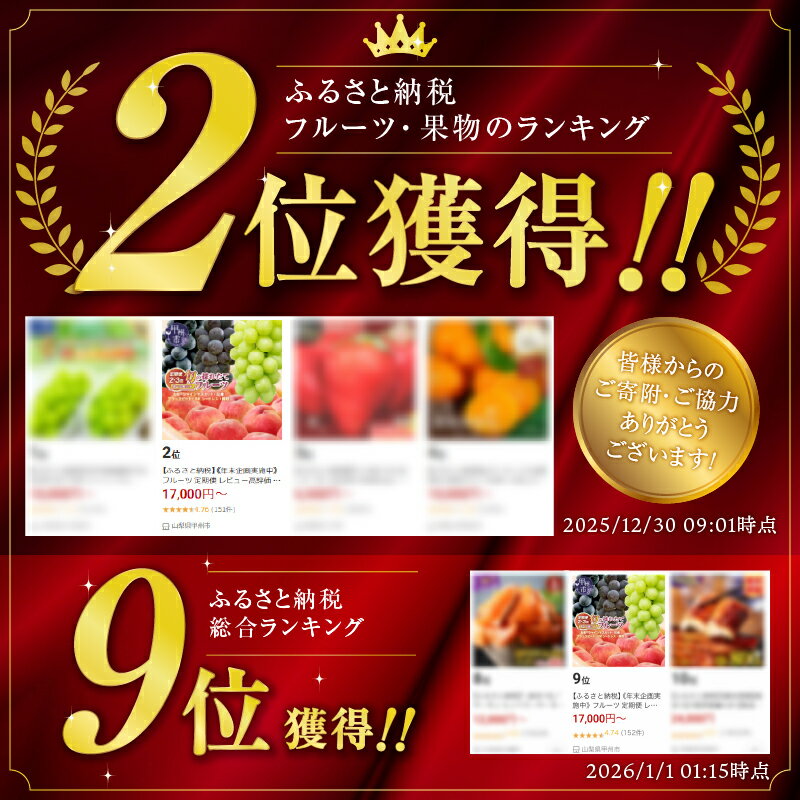 - 【ふるさと納税】 \レビューキャンペーン実施中/ フルーツ 定期便 レビュー高評価 2026年 シャインマスカット 桃 ぶどう お試し 選べる 巨峰 ブラックビート BKシードレス 藤稔 果物 冷蔵 新鮮 ランキング 高評価 数量限定 まずはお試し おすすめ 山梨県 甲州市 (HO)