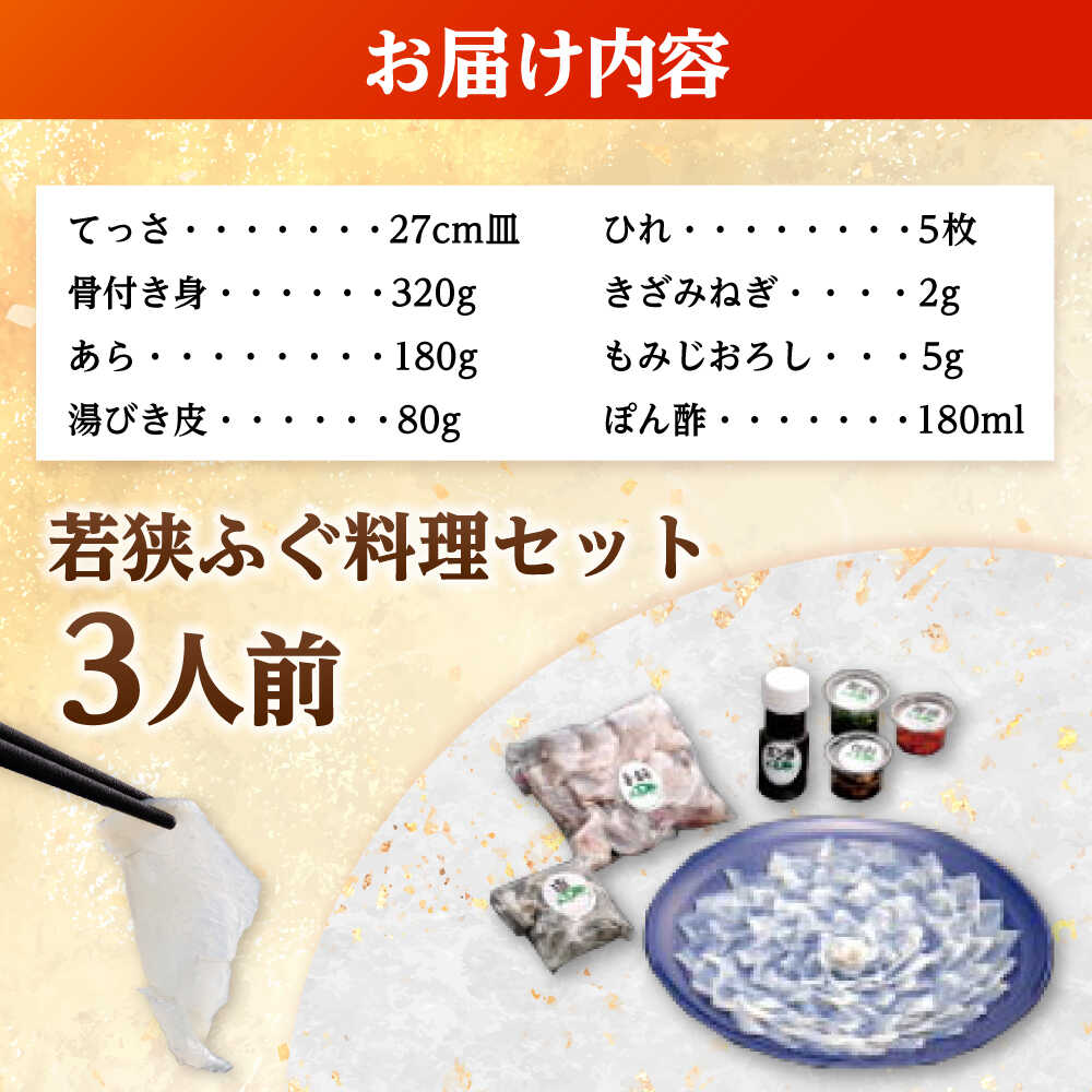 【ふるさと納税】【着日指定可能】【冷蔵】 若狭 ふぐ 料理堪能セット 3人前【配送不可地域:北海道・沖縄・離島】ふぐ フグ 河豚 ふぐ刺し ふぐ刺 ふぐ鍋 フグ刺し フグ鍋 とらふぐ トラフグ てっさ てっちり 魚介 海鮮 お刺身 刺し身 小浜市 / 民宿なかじま [BFBH001]