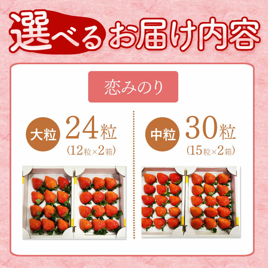 - 【ふるさと納税】【 順次発送 】いちご 恋みのり 大粒 24 粒 or 中粒 30 粒 | 果物 くだもの フルーツ いちご イチゴ 苺 選べる 品種 選べる 大きさ 数 送料無料 渡邉いちご園 君津市 きみつ 千葉県