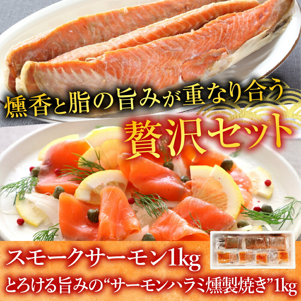 - 【ふるさと納税】 スモークサーモン 1kg&とろサーモンハラミ燻製焼き 1kg さけ サケ 鮭 加工品 個包装 真空 しゃけ シャケ 魚 さかな サカナ くんせい 燻製 トロ ハラミ お取り寄せ グルメ 海鮮 北海道 根室市 ふるさと納税 B-09070