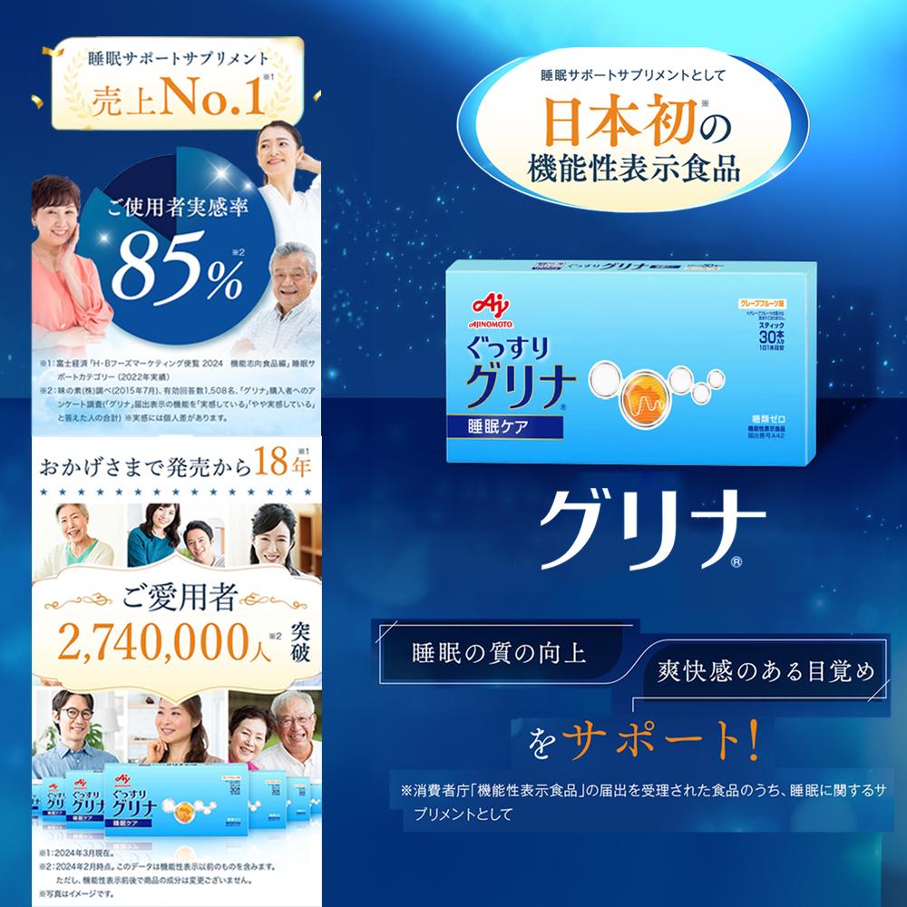 - <定期便>睡眠サポートサプリ、11年連続売り上げNO.1 、愛用者数274万人突破、味の素グリナ(機能性表示食品) スティック30本入り×6回発送(約180日分)【三重県 三重 四日市市 四日市 四日市市ふるさと納税 四日市ふるさと納税】