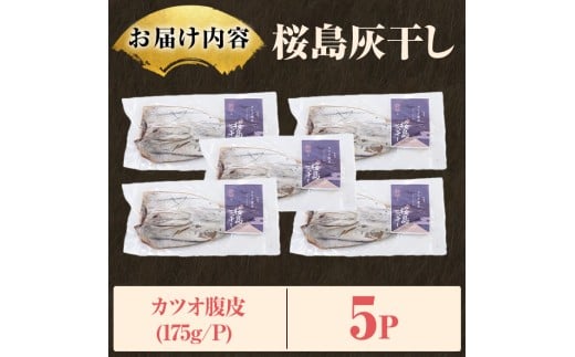 - y587 桜島灰干し鹿児島県産カツオ腹皮(計5P) 干物 魚 魚介 海産物 焼き魚 惣菜 おつまみ おかず 桜島 灰干し 冷凍 簡単調理 晩御飯 晩ごはん 朝食 朝ごはん 朝ご飯 和食 定食 カツオ 腹皮 保存料無添加 【マルハニチロ】