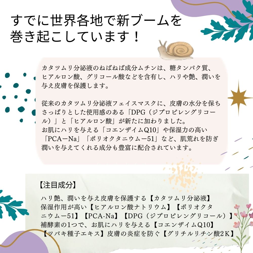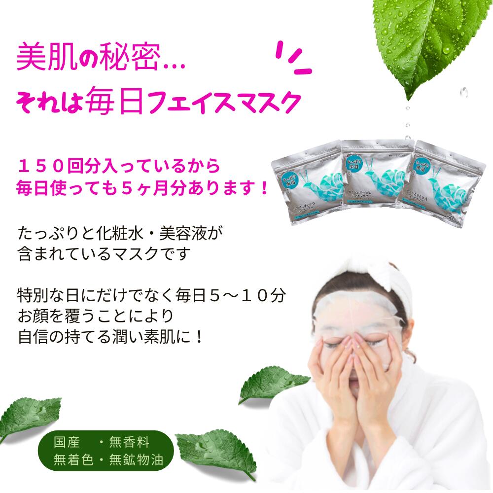 肌荒れを防ぐ 【合計150枚】 カタツムリ分泌液 フェイスマスク 50枚入×3袋 フェイスパック シートマスク 国産 無香料 無着色 無鉱物油 【SPC】