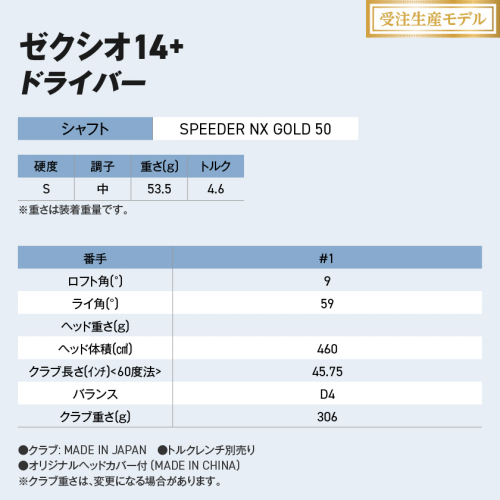 【受注生産】ゼクシオ 14+ ドライバー SPEEDER NX GOLD 50 カーボンシャフト【9/S】 《2025年モデル》_IM-C701-9S
