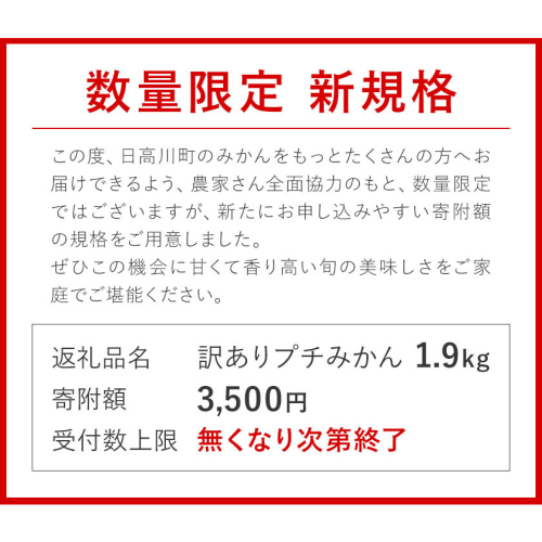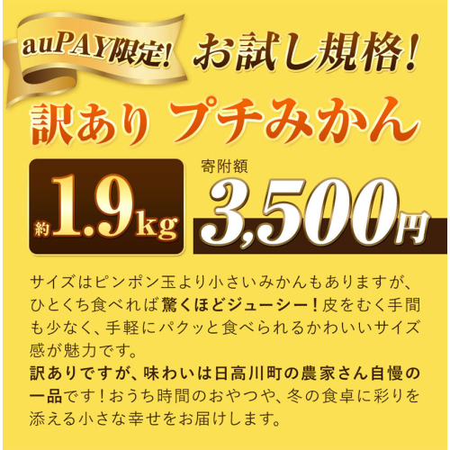 【auPAYふるさと納税限定】 和歌山 訳あり プチみかん (ピンポン玉程度の大きさです) 約1.9kg《1月上旬-1月末頃出荷》和歌山県 日高川町 柑橘類 柑橘 果物 フルーツ ミカン 訳ありみかん 家庭用 お試し みかん 小粒みかん 小玉みかん