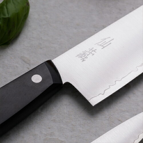 - 【ふるさと納税】H20-83 モザイクピン付き三徳包丁+ペティセット(EN-01/02) 〜切れ味の良い3層鋼ステンレス 日本刀のような波紋 デザイン〜