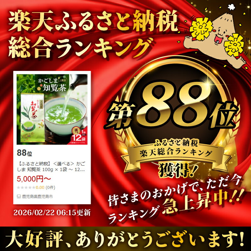 - 【ふるさと納税】<選べる> かごしま 知覧茶 100g × 1袋 〜 12袋 お茶 茶 鹿児島茶 緑茶 深蒸し 甘い まろやか 全国茶審査技術大会 日本茶 美味しい リラックス 上煎茶 渋味 厳選茶 茶葉 リーフ みのる園茶舗 鹿児島 鹿児島市 おすすめ ランキング プレゼント ギフト