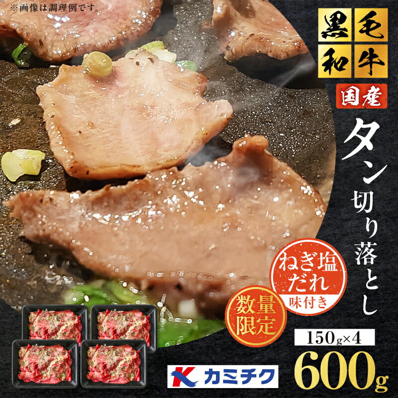 - 【ふるさと納税】【数量限定】国産 黒毛和牛 タン 切り落とし ねぎ塩 600g 肉 牛 牛肉 和牛 牛タン タン塩 ネギ塩 切落し スライス 味付き おつまみ おかず ご飯のお供 焼肉 冷凍 数量限定 限定 カミチク 鹿児島 鹿児島市 おすすめ ランキング プレゼント ギフト