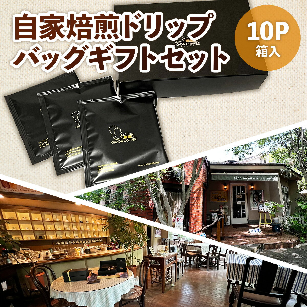- 【ふるさと納税】自家焙煎ドリップバッグギフトセット(10g×10袋/箱入) コーヒー ドリップ ギフト 贈答 珈琲 自家焙煎 挽きたて ブラジル ホンジュラス ペルー 【uj-DS002】【京都 岡田珈琲店】