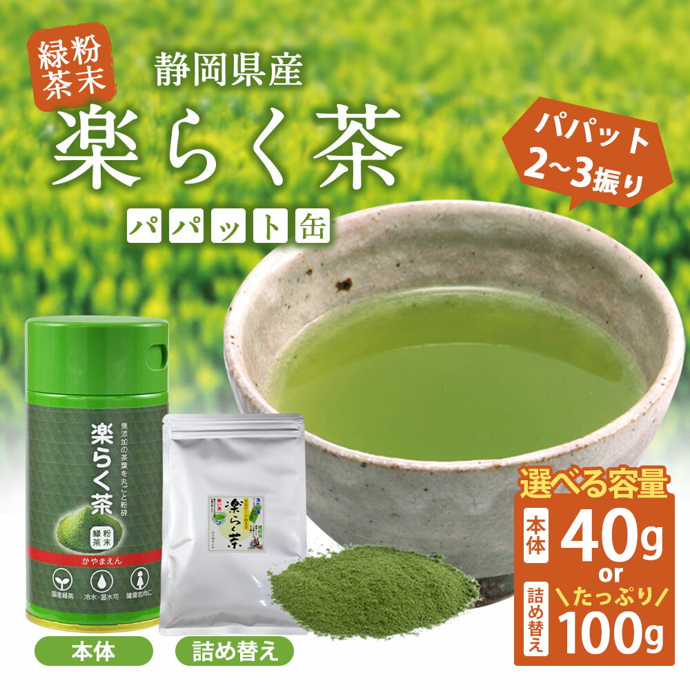 【ふるさと納税】楽らく茶 (40g(パパット缶入) / 100g(詰め替え)) パパット缶 詰め替え 一番茶 深蒸し茶 深蒸し お茶 茶 日本茶 緑茶 粉茶 粉末茶 粉末 冷茶 温茶 ホット アイス お取り寄せ 静岡県産 静岡県 菊川市 送料無料