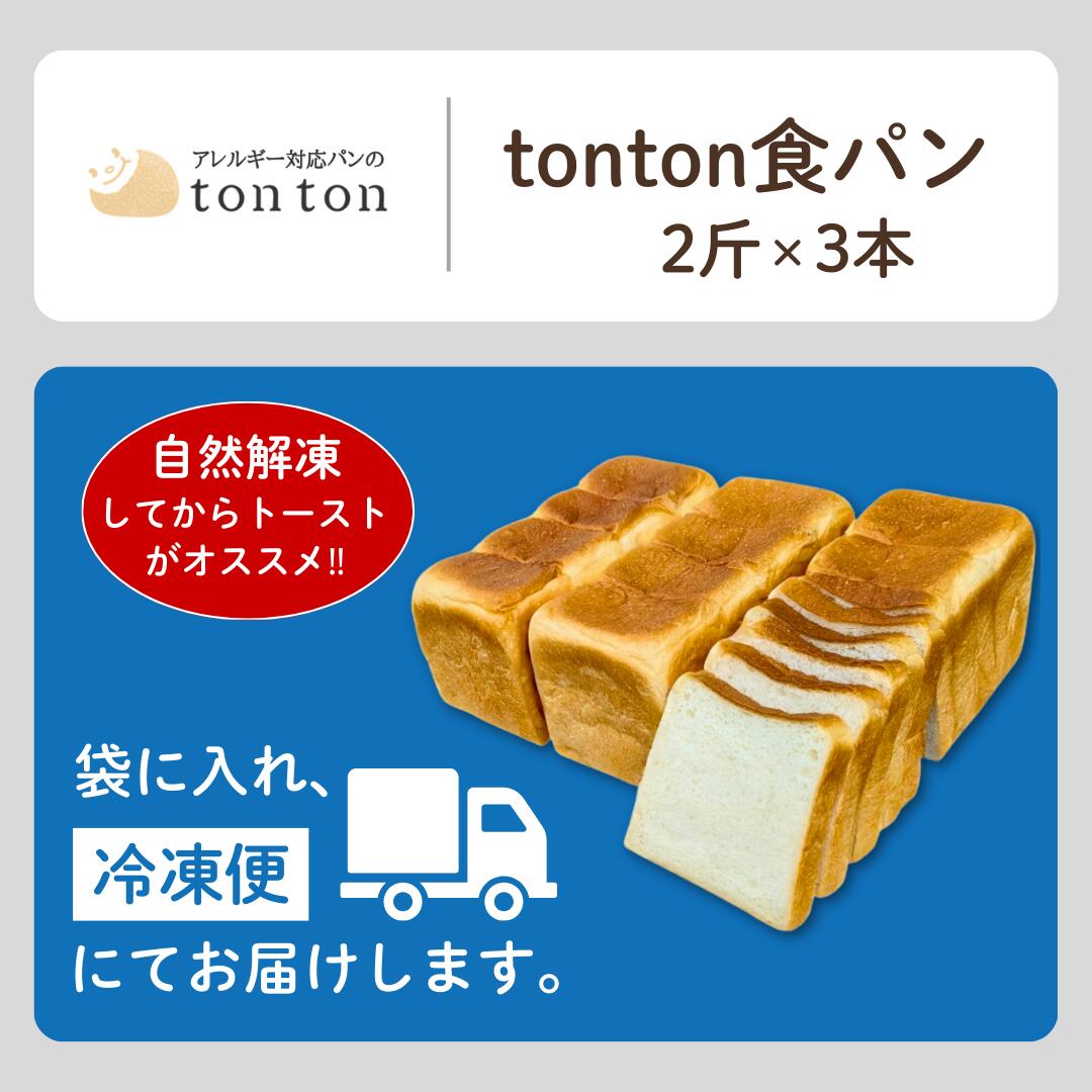 - 【ふるさと納税】「3ヶ月定期便(毎月)」《卵・乳アレルギー対応》 tonton食パン 2斤(2.2cmスライス)×3本 冷凍パン 卵不使用 乳不使用 冷凍 パン 小松市 石川県 02015【トントンパン】