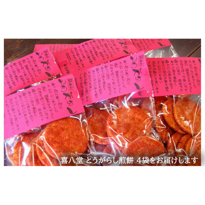 - 【ふるさと納税】 【喜八堂】とうがらし煎餅 4袋 / お菓子 激辛 せんべい うるち米 醤油 生だし 無添加 送料無料 千葉県 No.263