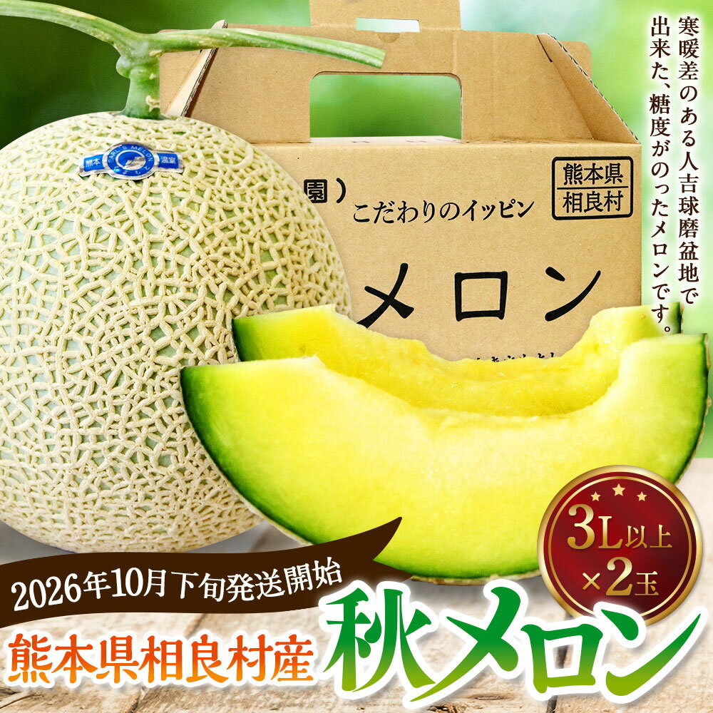 - 【ふるさと納税】【予約】相良村産 秋メロン 2玉 3L以上×2玉 アールスメロン【2026年10月下旬~11月上旬発送予定】 克己農園 熊本県産 糖度 メロン 青肉 フルーツ 果物 くだもの 果実 果肉 おやつ デザート 熊本県 相良村 先行予約 送料無料