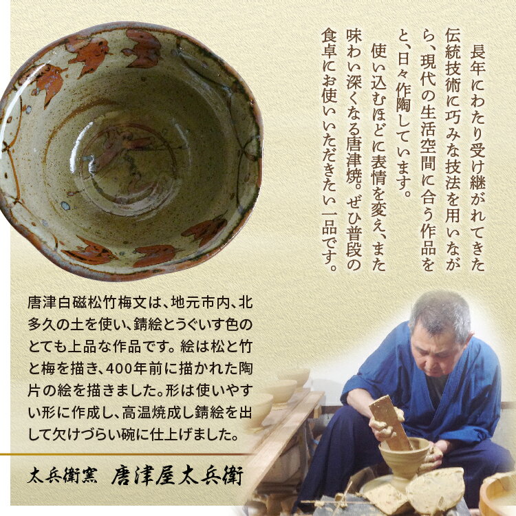 【ふるさと納税】【唐津屋 太兵衛窯】絵唐津 松竹梅文 碗 陶器 和食器 焼き物 | 絵唐津松竹梅文碗 日本製 伝統工芸 ギフト 贈答 _k-24