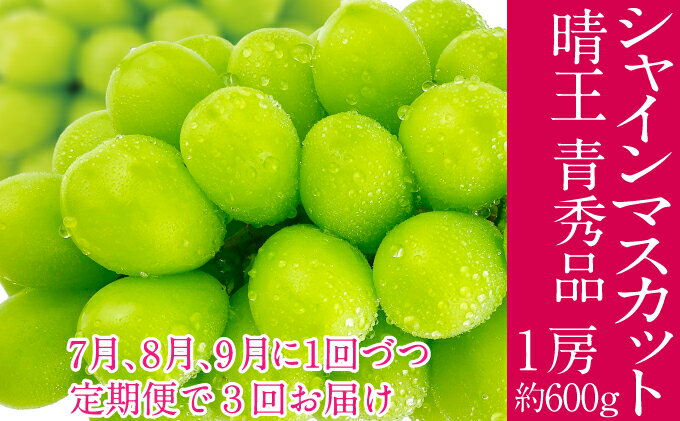 - 【ふるさと納税】2025年予約受付中【3回定期便】 シャインマスカット 晴王 7月8月9月に1回づつ出荷 1房 約600g 人気 岡山県産 種無し 皮ごと食べる みずみずしい フレッシュ 晴れの国 おかやま 果物大国 ハレノフルーツ お届け:2026年7月中旬~2026年9月下旬