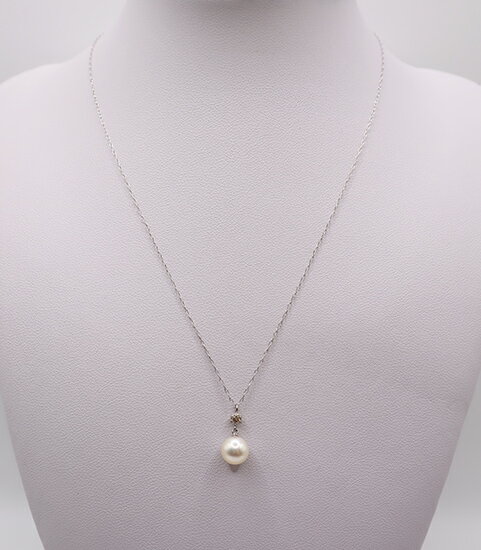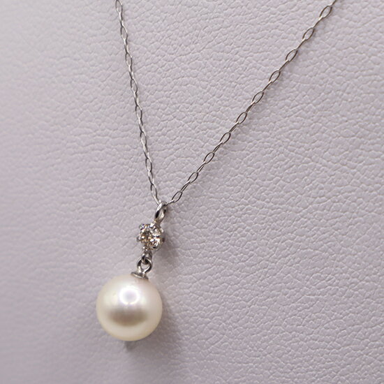 - 【ふるさと納税】1932 Pt あこや本真珠 6.5mmup ダイヤモンド0.09ct ペンダントネックレス