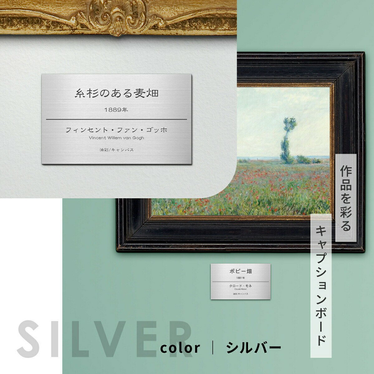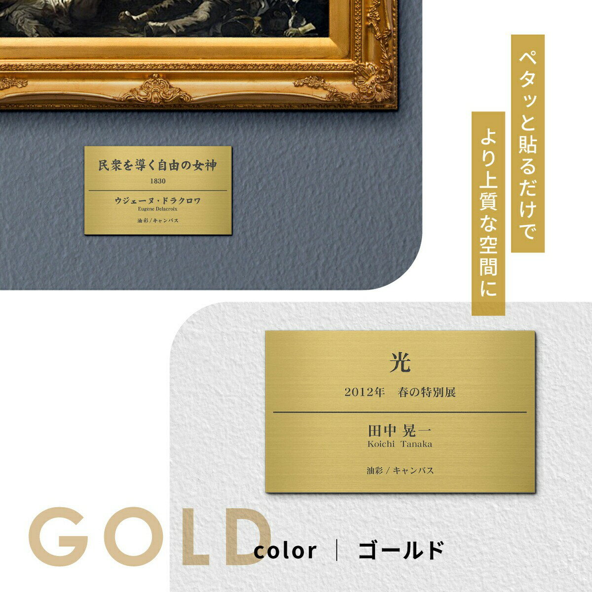 - 【ふるさと納税】キャプションボード S-M シルバー ゴールド ブロンズ 額縁プレート 題名 作品名 タイトル 作者名 美術館 個展 絵画 展示会 ギャラリー アート ステンレス調 真鍮風 銅板風 シール式 メール便 送料無料