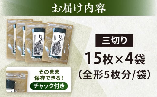 【訳あり】焼海苔 三切り15枚×4袋(全形20枚分)海苔 nori NORI のり ご飯 米 ご飯のお供 やきのり 焼きのり YAKINORI やき海苔 手巻き海苔 手巻き ランキング 人気 国産 訳アリ やきのり 焼海苔 海苔 のり ノリ 焼き海苔 海苔 横須賀 海苔 こだわり 海苔 走水海苔 【丸良水産】 [AKAB035] 6000円 6千円