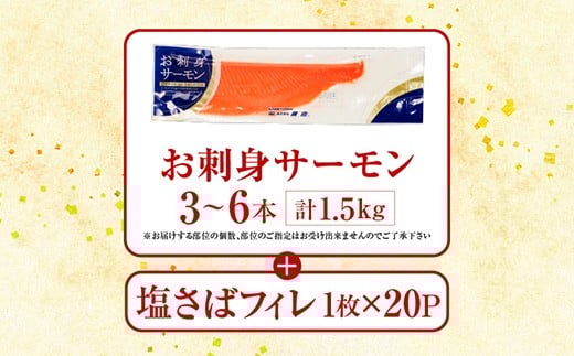 C-09021 お刺身トラウトサーモン1.5kg、塩さばフィレ1枚×20P